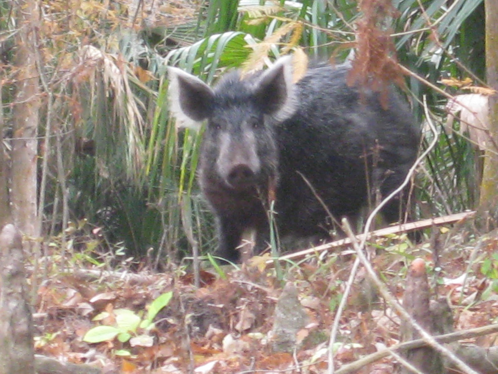 Monkeys, alligators, an otter, a pair of deer, what a day. But wait, there's more. Twenty minutes after the deer, I saw a animal head in the water. Crossing the River. Followed by another. Those are some dark deer, I thought. I got closer, not deer hogs. I never thought about swimming hogs, but there they were. Unable to get a swimming shot.
